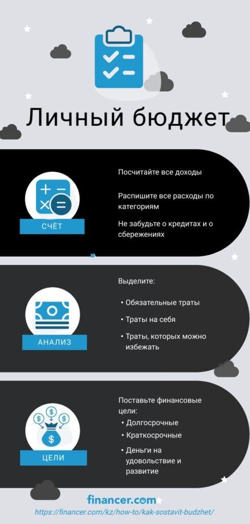 Это финансовый план, в котором вы определяете, какие расходы и доходы у вас есть каждый месяц. Это хороший способ узнать, сколько у вас денег ежемесячно.